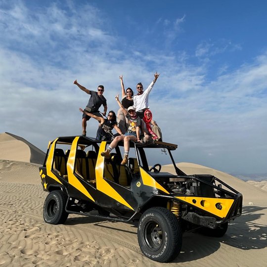 Llegaremos al famoso oasis rodeado de dunas doradas, donde te espera la adrenalina: recorrerás el desierto en buggies (tubulares) y practicarás sandboarding, deslizándote por las gigantescas dunas con vistas espectaculares.